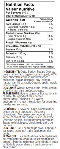 There's an age-old maxim in the kitchen environment, of behaviour but ultimately a rule of existence passed on generation after generation: "Why deny it when you can embrace it?" The subject is chocolate. Treat yourself to a granola recipe that takes an ingredient of once sinful decadence, tames it, absolves it, and tops it with a halo. I'm not lying! Low in saturated fat, low sodium, and a great source of fibre and iron, our 70% Dark Chocolate Chunk granola will remind you why our religious ancestors discovered chocolate in the first place!